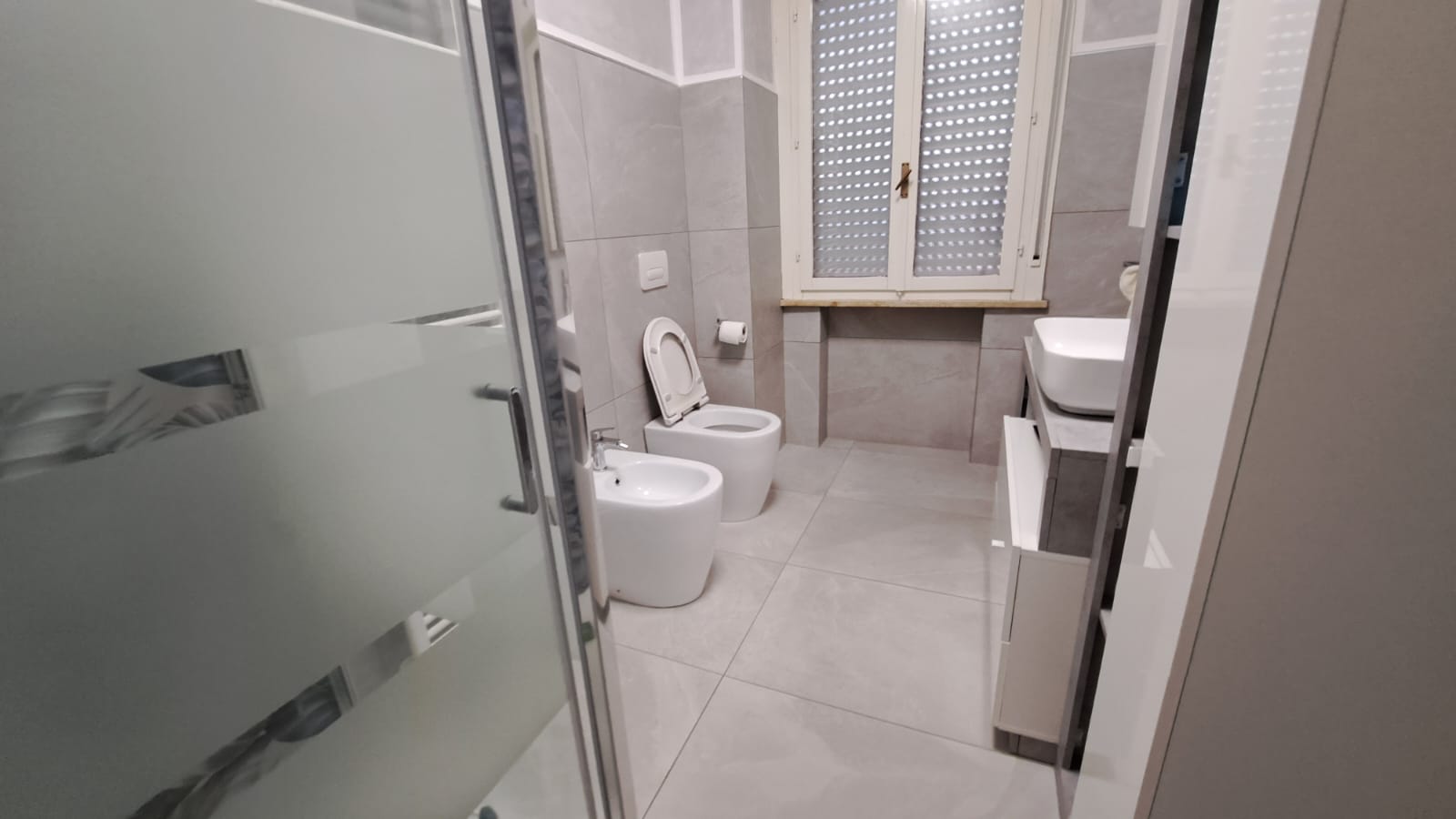 Bagno moderno con doccia molto ampia